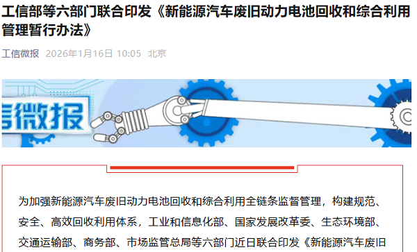 新能源汽车废旧动力电池回收利用新规发布