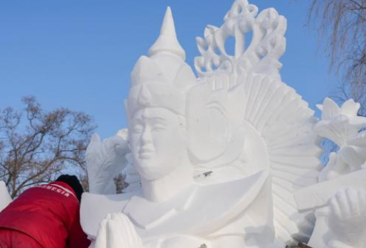 哈尔滨国际雪雕比赛:“三九”天 露芳容