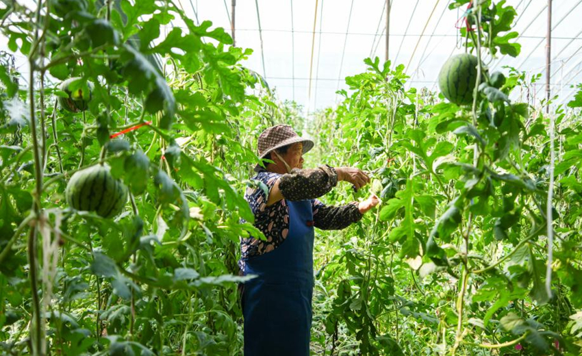 山东潍坊:小型西瓜成熟 瓜农收获忙