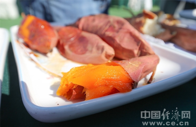 10月10日,观众在以“生态彰武·零碳地瓜·畅飨健康”为主题的国家地理标志农产品彰武地瓜品鉴会上品尝地瓜特色产品。