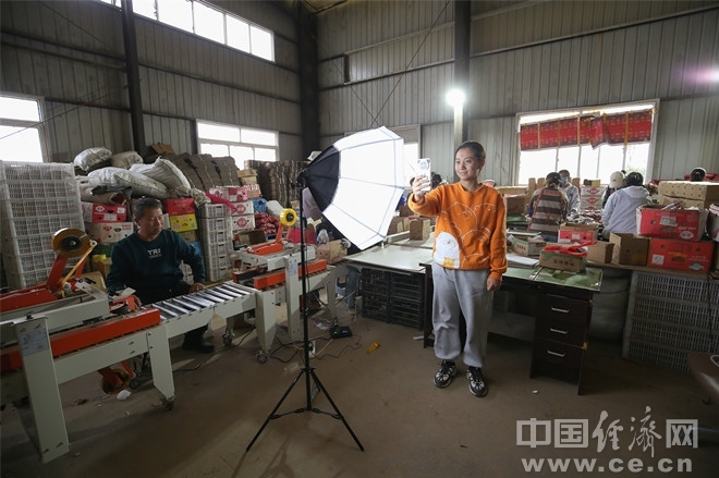 线上热销,新鲜直达。借力直播电商,主播正在向网民推介彰武地瓜。