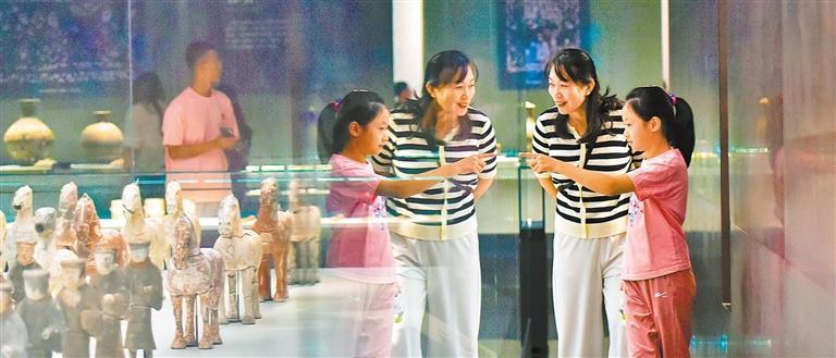 10月5日,山东省青州博物馆,游客在参观展品。王继林摄(中经视觉)