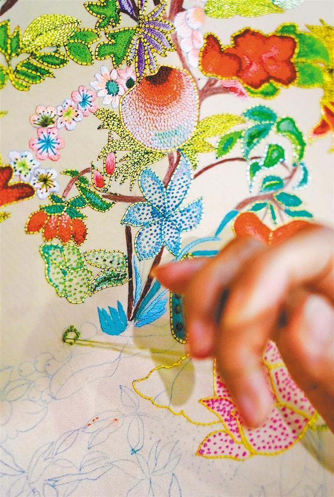 如今,汉绣与现代生活越来越近,蕴含汉绣元素的卷轴挂画、汉绣摆件、扇子、包包、书签、茶旗、杯垫、镜子、耳钉等特色绣品,深受广大年轻人的喜爱与追捧。汉绣还现身外交部湖北全球推介活动,走向世界。(经济日报记者 赵 晶 柳 洁 董庆森摄影报道)