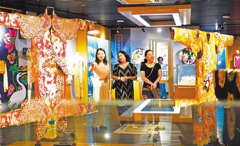 9月13日,观众在位于武汉洪山区的荆楚纺织非遗馆参观汉绣服饰。
