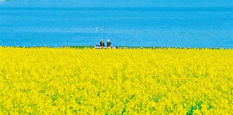 2月10日,临沧市临翔区博尚镇,万亩油菜花绽放,吸引游客前来赏花垂钓。