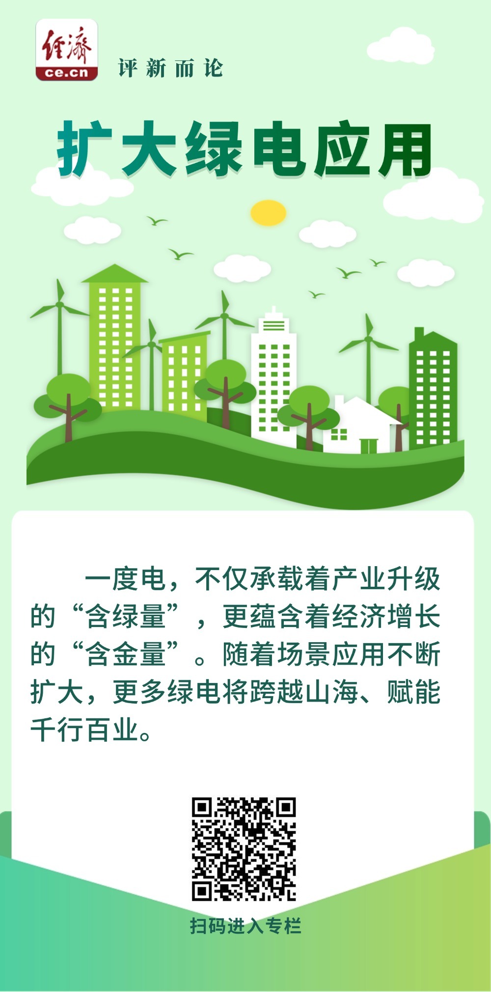 绿色转型,是一个供给与需求相互影响、相互作用、相互促进的过程。一度电,不仅承载着产业升级的“含绿量”,更蕴含着经济增长的“含金量”。随着场景应用不断扩大,更多绿电将跨越山海、赋能千行百业。(中国经济网评论员 子房先生)