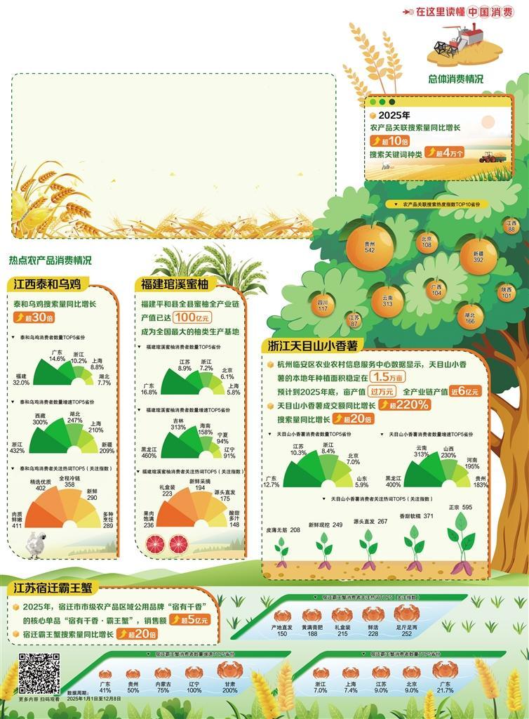 从五常大米香飘万家,到云南黑松露“飞入寻常百姓家”;从大连海参消费亮眼,到宿迁霸王蟹异军突起……2025年地标农产品消费快速增长,印证了一个朴素道理:“土特产”价值跃升,关键在品牌化的精准赋能。地标农产品品牌化,从来不是简单贴个标签、起个名号,而是一场从田间到餐桌、从品质到口碑的全链条升级。