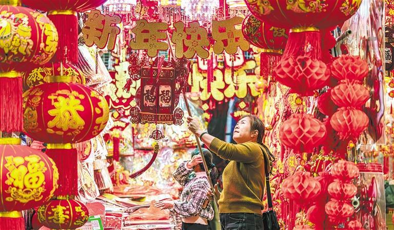 一月二十一日,“世界超市”中国义乌国际商贸城,客商在选购福字。随着春节临近,商城内各类年货用品不断上新,迎来消费高峰。吕 斌摄(中经视觉)