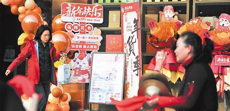 1月22日,市民在湖北省“三城联动年货季”宜昌市夷陵区萧品茶铺欣映像店购买茶饮品。张国荣摄(中经视觉)