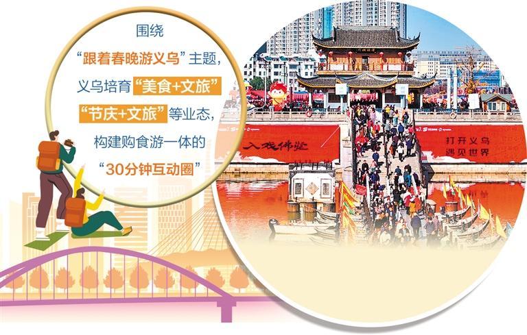 “不仅要抓住短期热度,更要将这份热度转化为城市发展的长久动能。”义乌市文广旅体局副局长史盛俊表示,短期来看,可通过开发春晚同款文创产品、推出特色文旅套餐等举措,将全国观众的瞬时关注转化为实际的客流量与消费订单,培育文旅消费新增长点;长期来看,围绕“跟着春晚游义乌”主题,不断焕新消费场景,丰富游览体验,通过开发沉浸式互动体验项目,引入常态化演艺和品牌首店,培育“美食+文旅”“节庆+文旅”等多元业态,进而构建购食游一体的“30分钟互动圈”。
