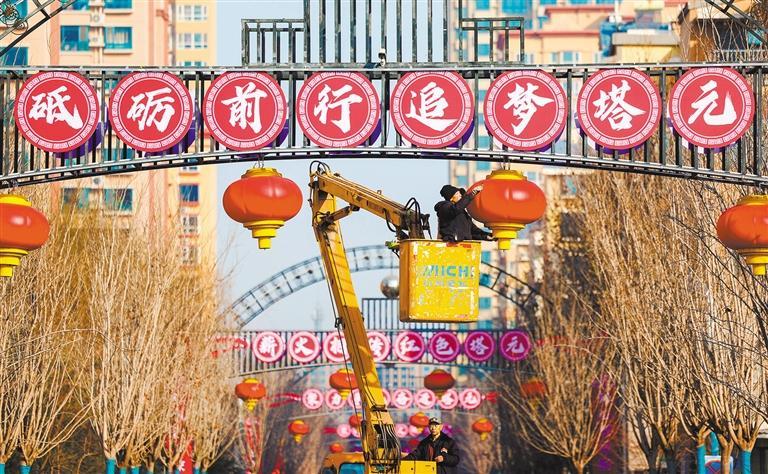 2月5日,在河北省石家庄市正定县塔元庄村幸福大街,当地村民正悬挂红灯笼,迎接新春佳节。2025年,塔元庄村村集体收入突破3300万元,村民人均年收入约3.5万元。石家庄日报记者梁子栋 摄