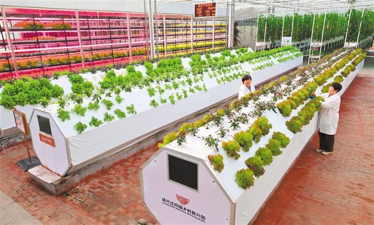 2月5日,塔元庄村同福乡村振兴园内,工作人员在管护水培蔬菜。该园区包含智慧农场、中央厨房自动化生产线、研学营地等板块,发展融合产业带动农民增收。石家庄日报记者梁子栋 摄