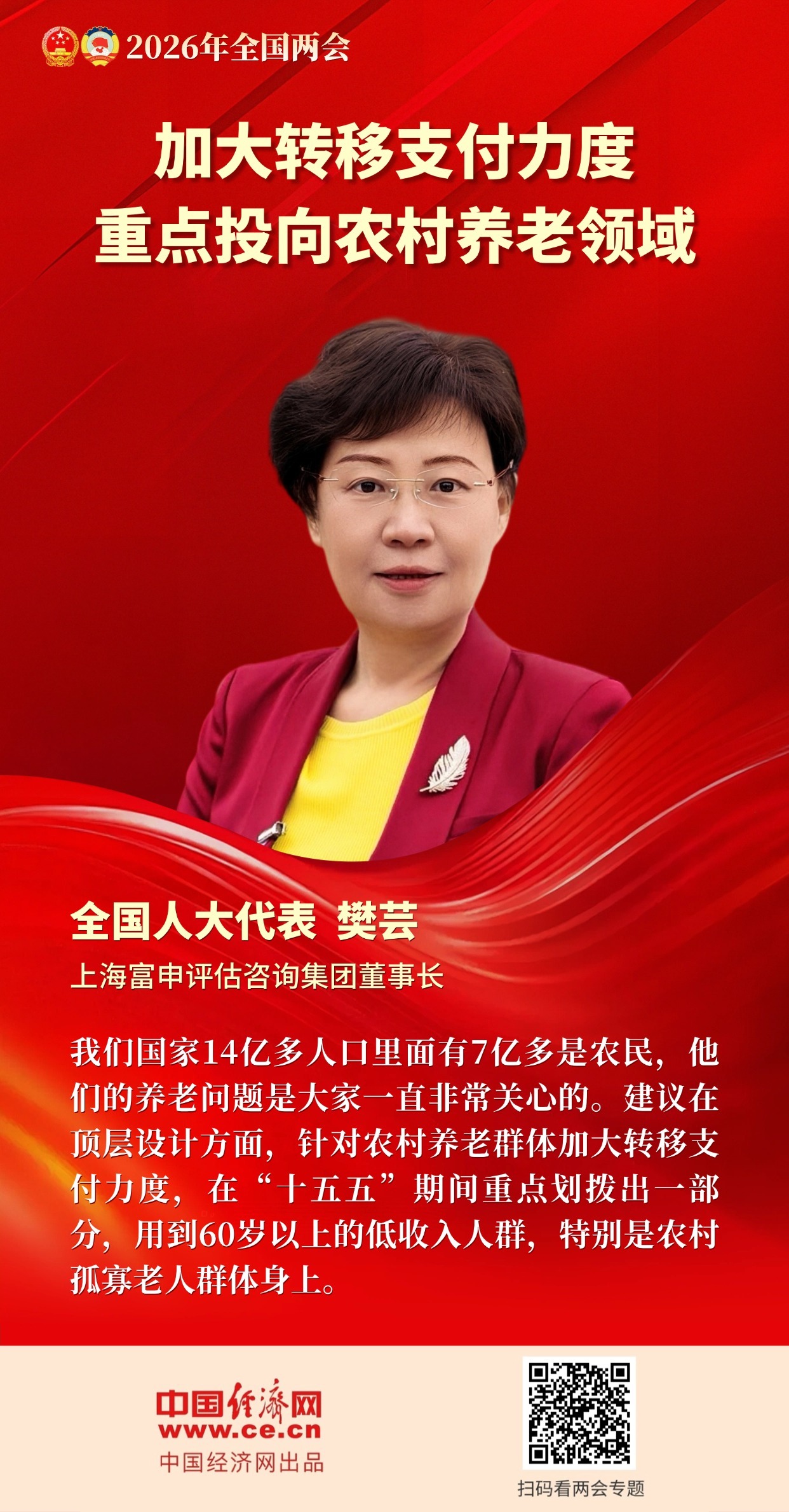 海报丨樊芸代表:加大转移支付力度 重点投向农村养老领域