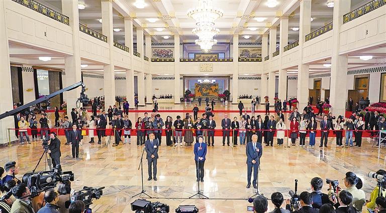 3月7日,全国政协十四届四次会议第二场“委员通道”集体采访活动在北京人民大会堂举行。经济日报记者 赵 晶摄