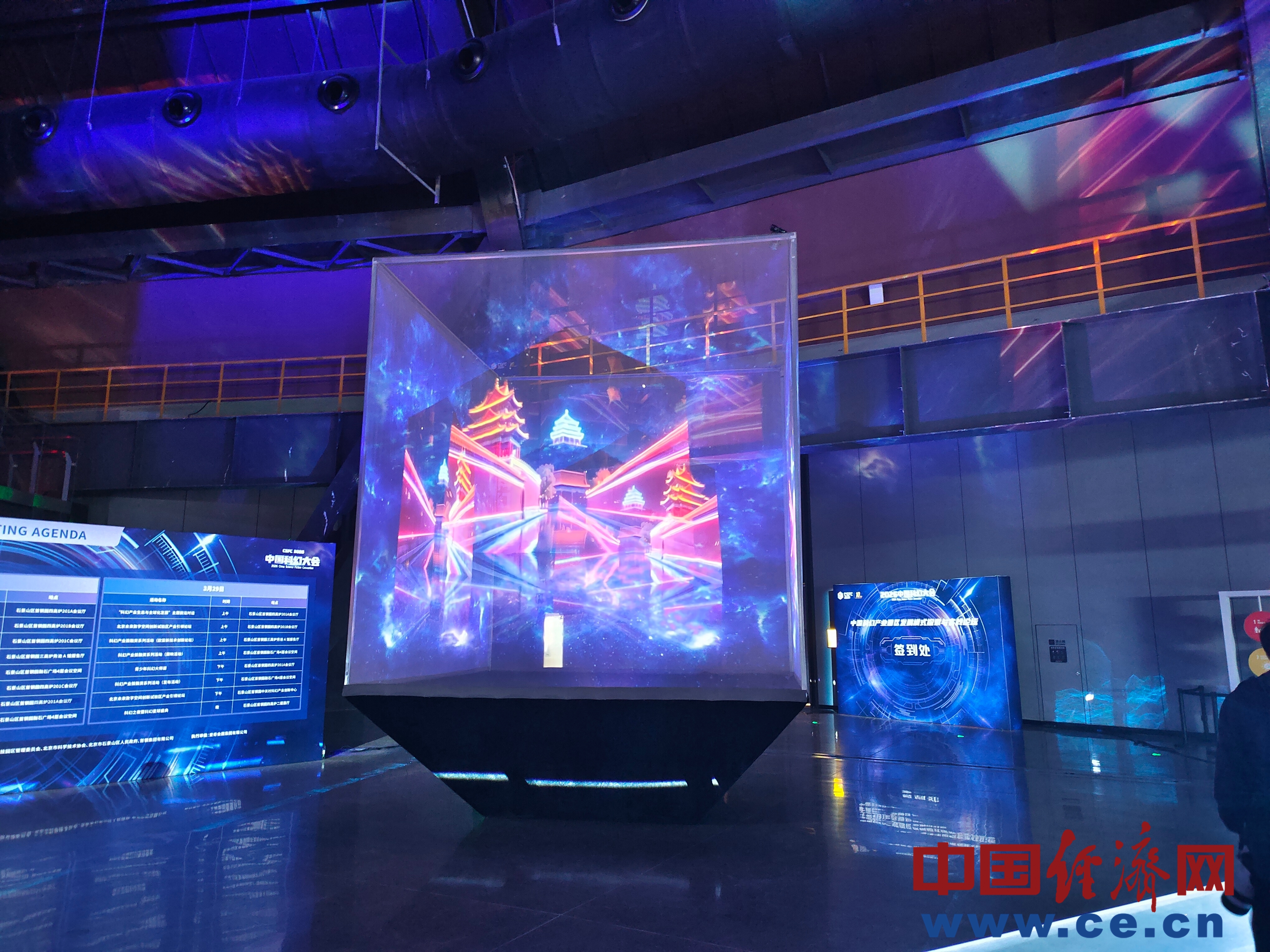 位于四高炉二楼大厅核心区域的“幻立方”,是一座通体发光的幕布立方体。中国经济网记者 朱晓倩/摄