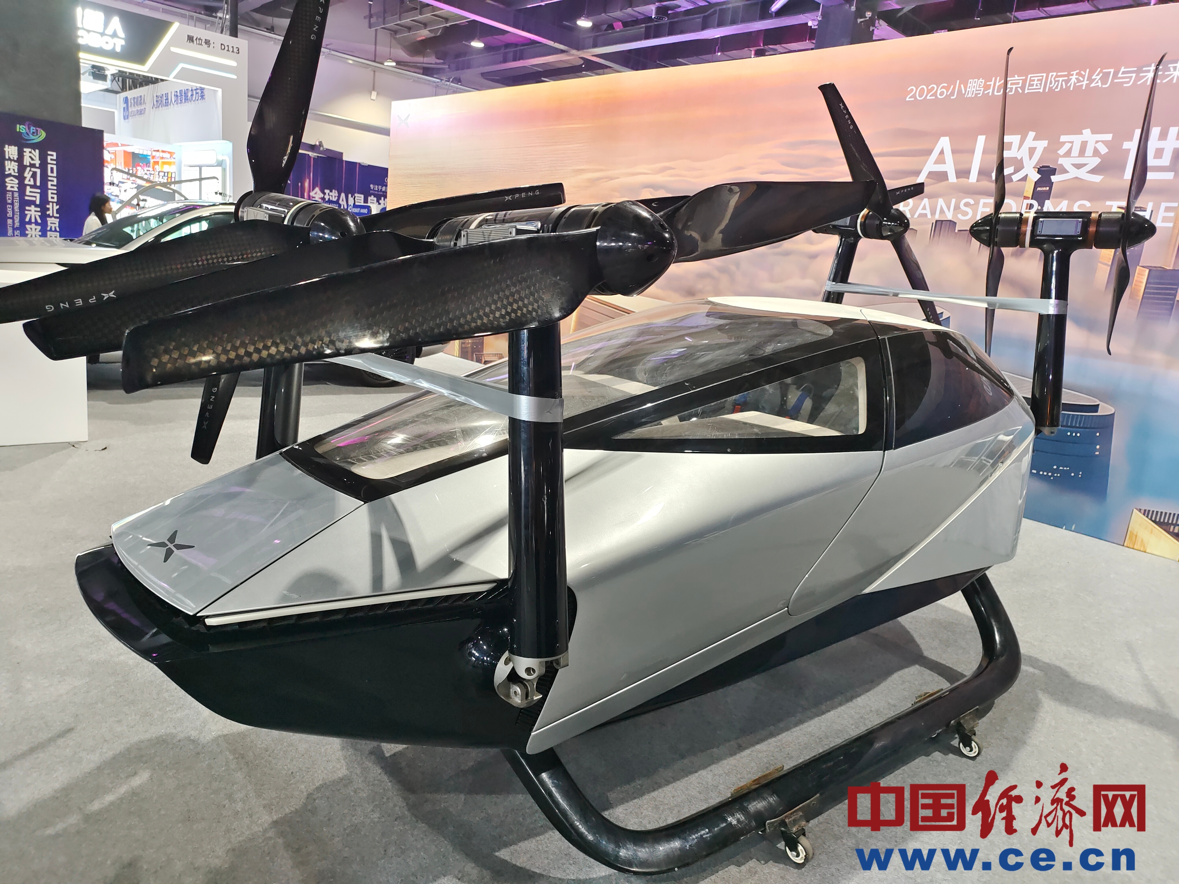 2026北京国际科幻与未来产业博览会上展示的小鹏A868全倾转混电飞行汽车。中国经济网记者 朱晓倩/摄