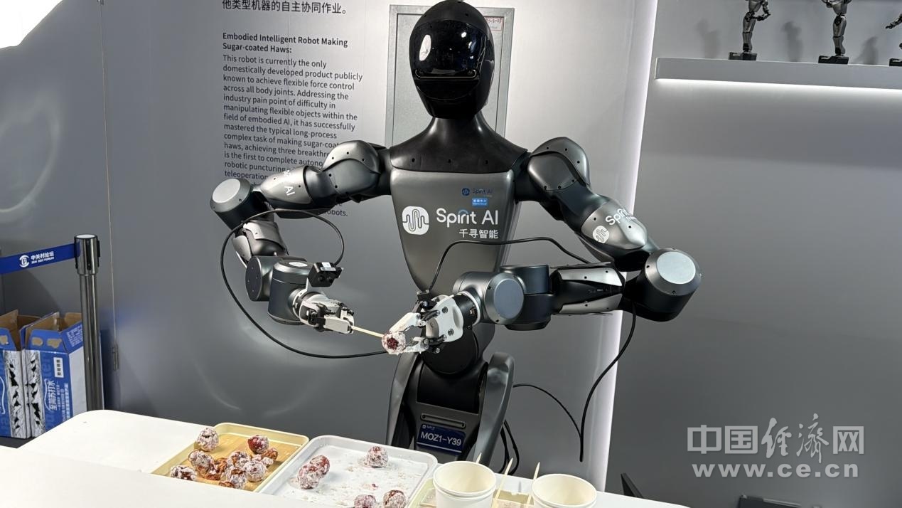中关村论坛年会不仅是技术的“展示窗”,更是创新的“试验田”,在这片试验场上,科技创新与产业创新的深度融合正不断加强。偶尔失误但从不内耗的“串糖葫芦”机器人小墨,其背后是从“标准件”到“非标准柔性物体”的视觉与动作泛化,需要精细的视觉识别和力控能力。万境千寻(北京)科技有限公司负责人介绍,这次参会完成机器人从“静态实验室”到“动态强干扰真实世界”的转变,让VLA模型在这种充满动态干扰的真实服务场景中稳定输出,是实现规模化商业落地的必经之路。