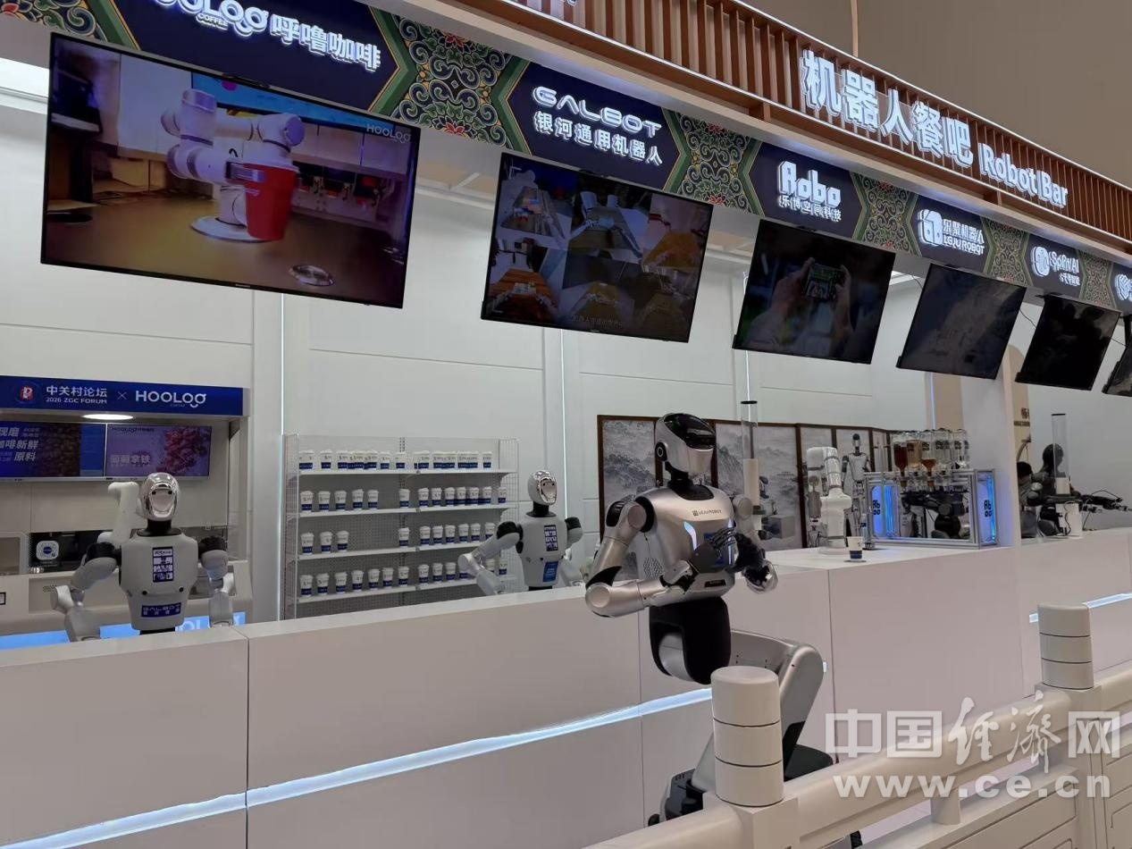 2026中关村论坛年会现场的机器人餐吧,依托智源研究院RoboBrain与RoboOS平台,乐聚、千寻等5家具身智能企业的8台机器人,实现了从点餐、制餐到送餐的全流程自主协同作业。负责串糖葫芦的千寻智能机器人、负责做咖啡的呼噜咖啡机器人,它们制作的食物由银河通用的机器人拿上柜台后,再由乐聚通研的机器人担任服务员,双手为顾客奉上预点餐品。