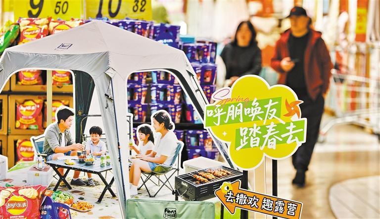 3月14日,浙江省嘉兴市南湖区一大型商超,消费者在选购露营商品。金 鹏摄(中经视觉)