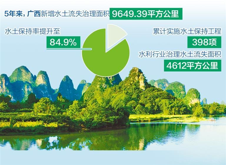 潭下镇生态清洁小流域是广西全区水土保持高质量发展的缩影。记者从广西壮族自治区水利厅了解到,5年来,全区新增水土流失治理面积9649.39平方公里,水土保持率提升至84.9%,水土流失面积和强度连续8年“双下降”。