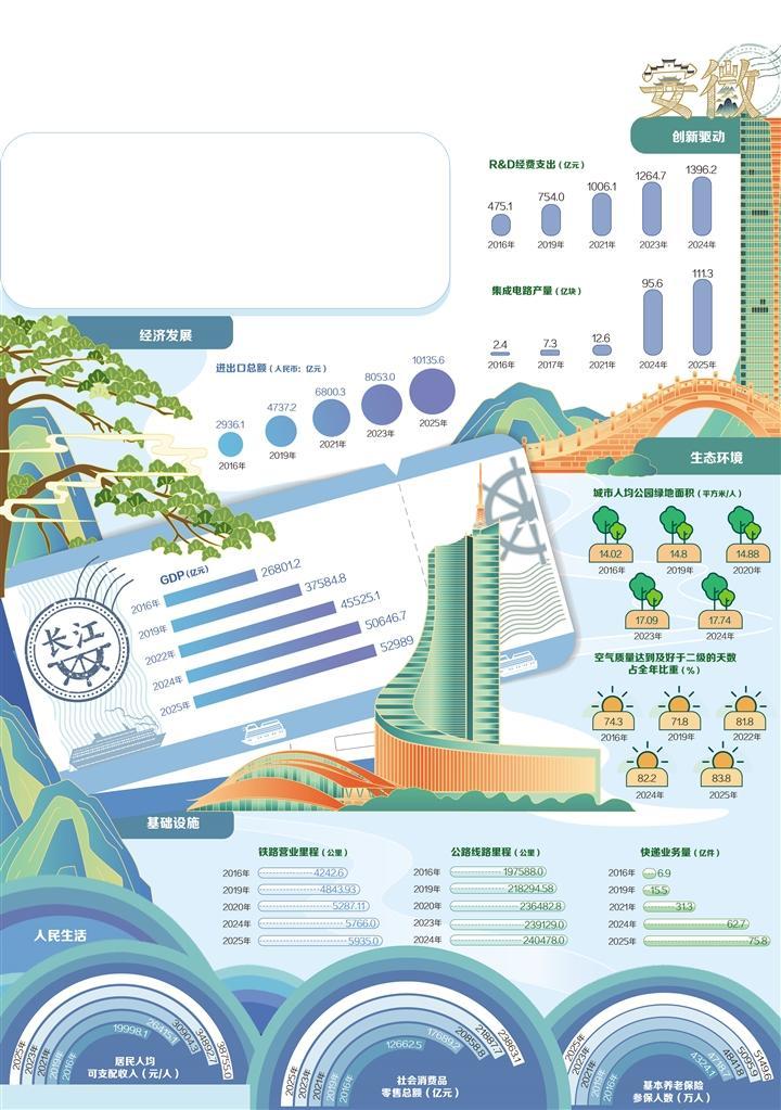 为摆脱依赖资源消耗谋发展的传统路径,安徽抢抓机遇,以科技创新引领产业创新。合肥综合性国家科学中心的建设,量子信息、聚变能源等未来产业的布局,标志着安徽正在从传统的要素驱动向创新驱动加速跃迁。在奇瑞汽车超级工厂,智能机器人精准作业,新能源汽车下线的节奏越来越快;合肥量子产业集群中,“本源悟空”量子计算机等前沿成果不断涌现,量子通信网络覆盖上万公里。曾经的“钢城”马鞍山,如今培育起绿色食品、智能装备等新兴产业;铜陵有色通过技术改造,实现铜冶炼废渣“吃干榨尽”,资源利用率达99%以上。创新之火,正点燃安徽产业升级的引擎。