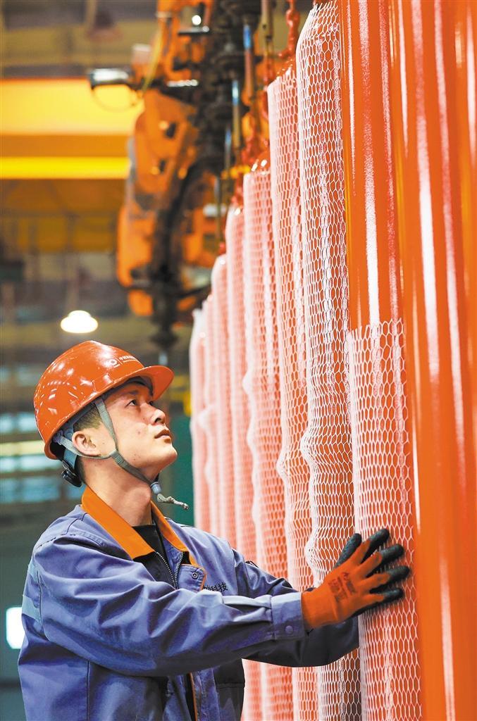 4月21日,江西省瑞昌经开区中材科技(九江)有限公司车间,工人在赶制钢质无缝气瓶。