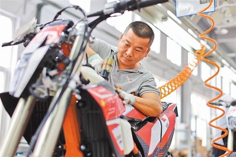 4月9日,位于重庆市沙坪坝区的重庆迈登摩托车有限公司生产车间,工人在组装出口越野竞赛摩托车。