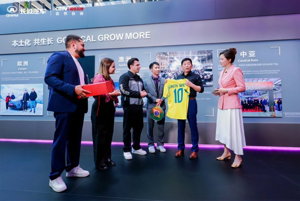 走进国际展区,魏建军与来自巴西、澳洲的嘉宾深入交流,传递“契约是最好的全球化”理念。他强调,真正的全球化,不是卖了多少辆车,而是融入了多少种生活。