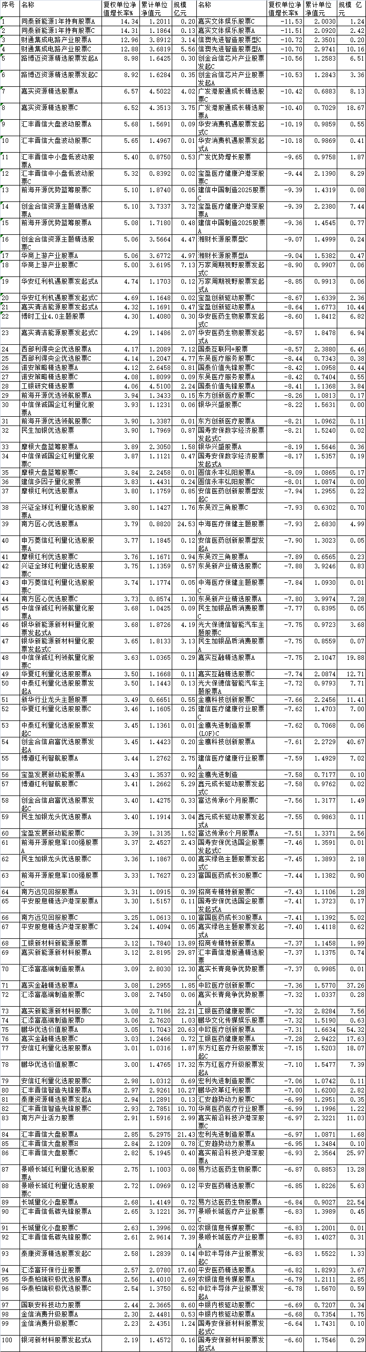 创金合信芯片产业股票发起A/C和广发港股通成长精选股票A/C也下跌了10.53%、10.56%、10.40%、10.42%。前者重仓中芯国际、海光信息、中微公司、恒玄科技、乐鑫科技、光库科技、盛美上海、江波龙、瑞芯微、长川科技;后者重仓阿里巴巴、信达生物、腾讯控股、中芯国际、小米集团、思摩尔国际、地平线机器、九方智投控股、小鹏汽车、理想汽车。