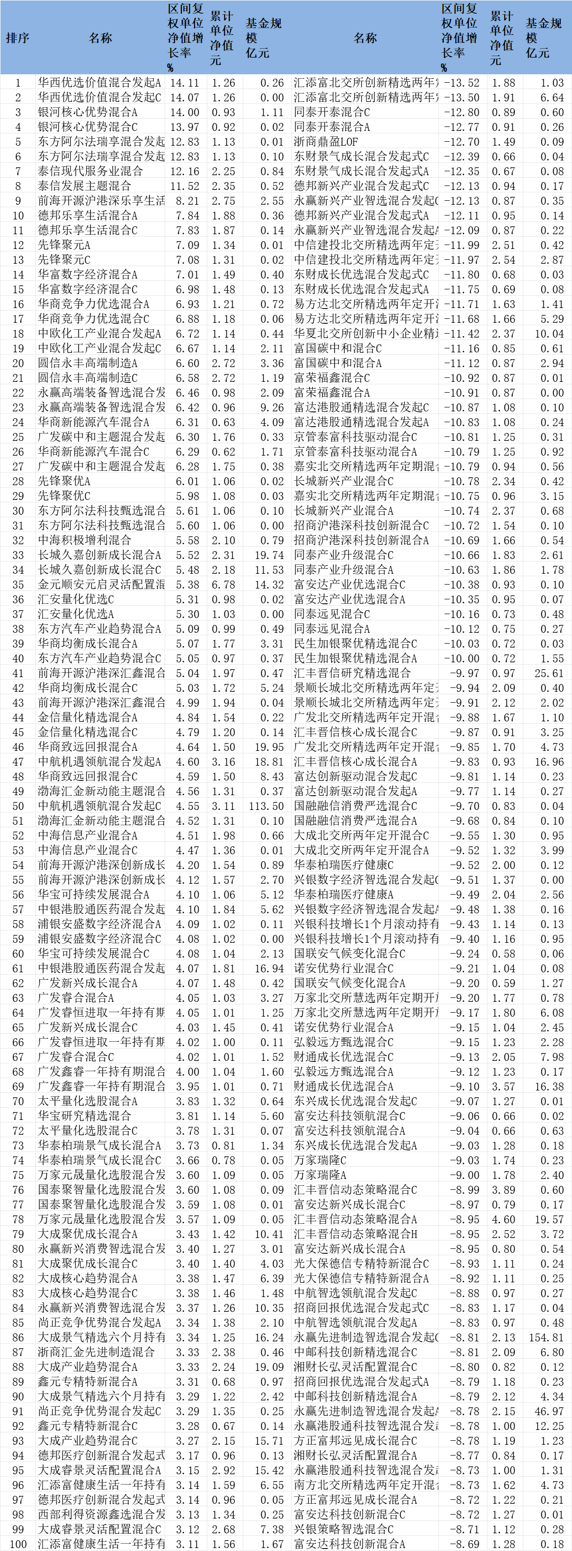 2025年11月份混合型基金涨跌幅前100名
