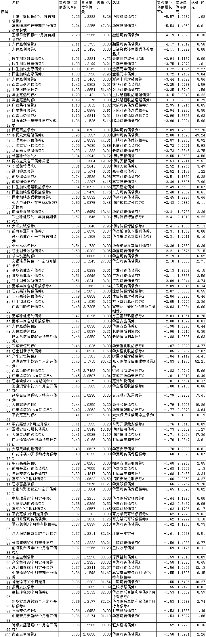 而融通可转债债券C、融通可转债债券A、山证资管裕享增强债券发起式E、泰信债券增强收益D、金鹰元丰债券C、金鹰元丰债券A、金鹰元丰债券D、浙商丰利增强债券等多只基金在11月份跌幅均超过3%。