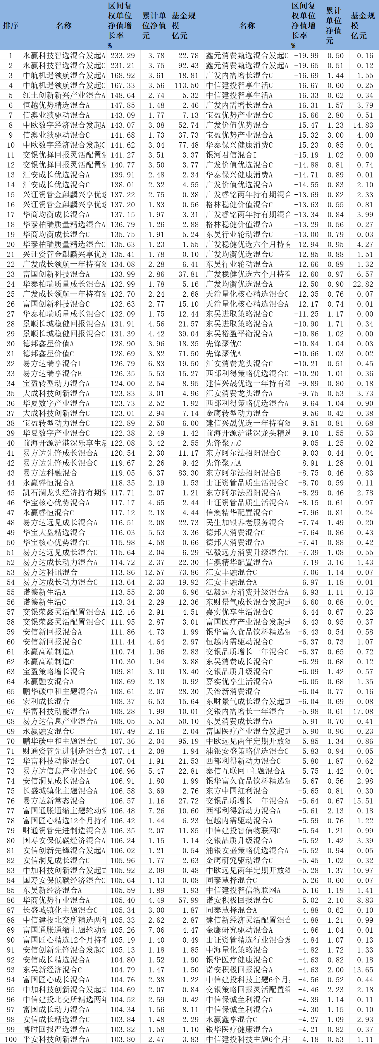 2025年混合型基金涨跌幅前100名