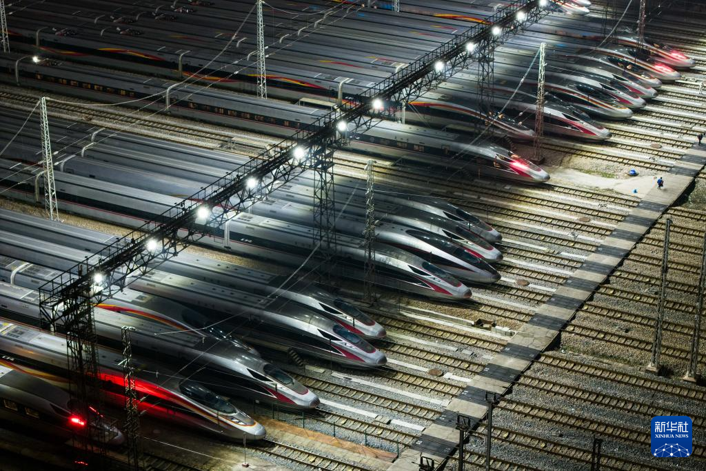 2026年春运从2月2日开始,到3月13日结束。做好准备的列车整齐排列,如同一支“陆地舰队”蓄势待发。