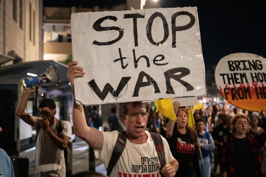 10月4日,人们在耶路撒冷参加游行集会,要求政府迅速在加沙地带实现停火。新华社记者陈君清摄