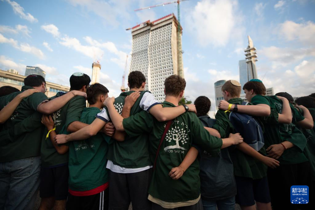 10月9日,在以色列特拉维夫,人们获悉加沙停火协议的消息后相互庆祝,期待被扣押的人员早日获释。