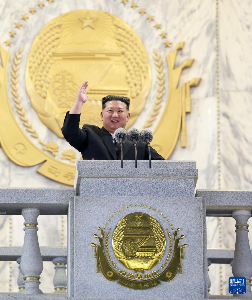 10月10日,朝鲜劳动党总书记、国务委员长金正恩在平壤出席庆祝朝鲜劳动党成立80周年阅兵式。庆祝朝鲜劳动党成立80周年阅兵式10日在平壤金日成广场隆重举行,朝鲜劳动党总书记、国务委员长金正恩出席并发表讲话。新华社记者 丁海涛 摄