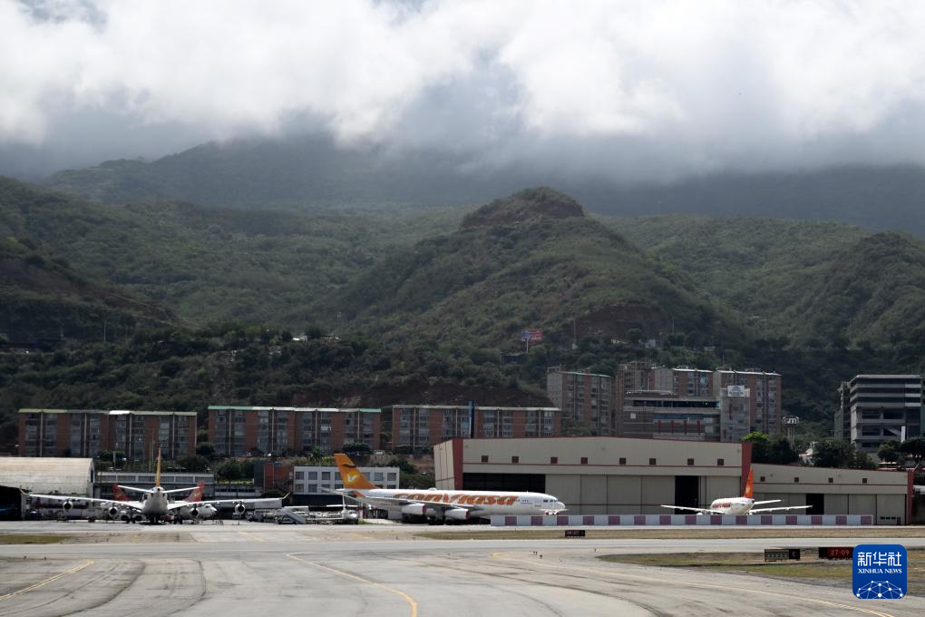 这是12月1日在委内瑞拉首都加拉加斯附近的迈克蒂亚西蒙·玻利瓦尔国际机场拍摄的停机坪上的客机。