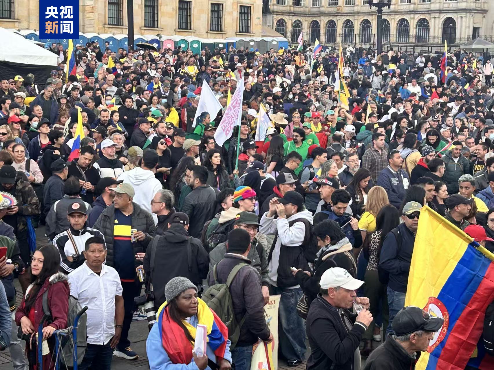 在哥伦比亚总统佩特罗的号召下,当天16时,哥伦比亚民众在各大城市地标建筑举行大规模游行示威。他们挥舞着国旗,举着“维护国家主权”等标语,抗议美国以所谓打击毒品为由,威胁对哥伦比亚采取军事行动。(总台记者 邓雪梅)