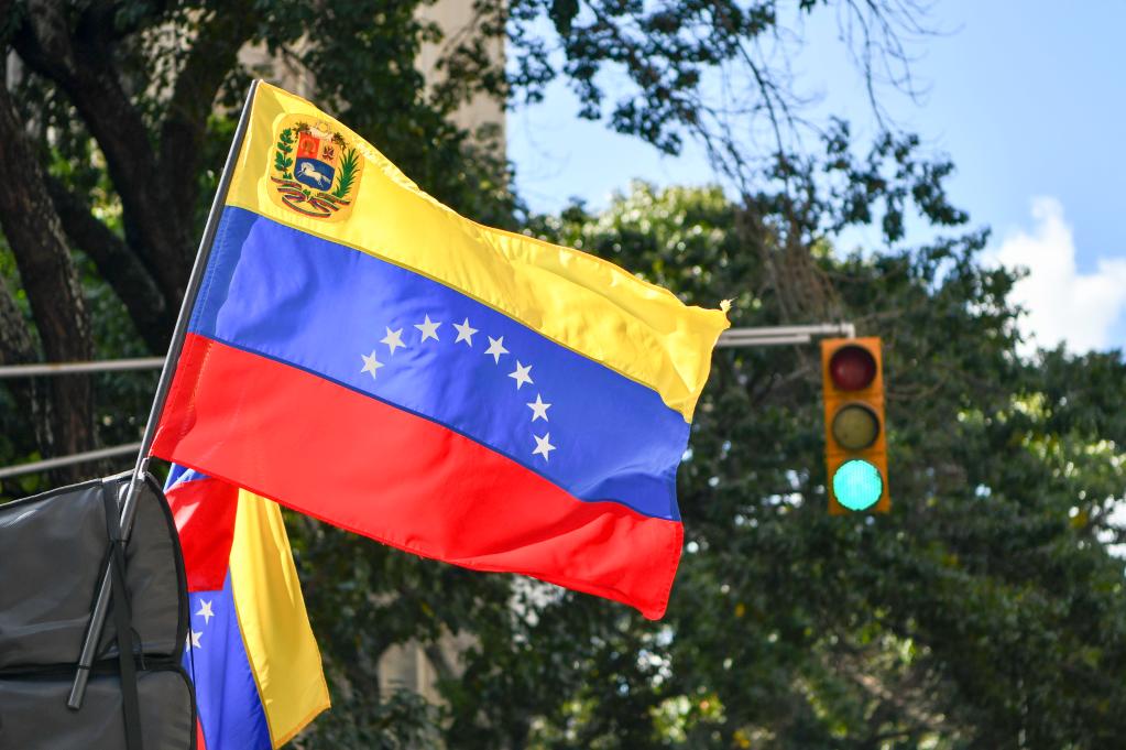 这是1月8日在委内瑞拉首都加拉加斯拍摄的委内瑞拉国旗。美国总统特朗普9日称,已取消此前预计的对委内瑞拉第二波军事打击。特朗普在社交媒体上称,第二波打击“看起来不需要”。但出于安全保障目的,所有美国舰船都留在原地。新华社记者丁洪法摄