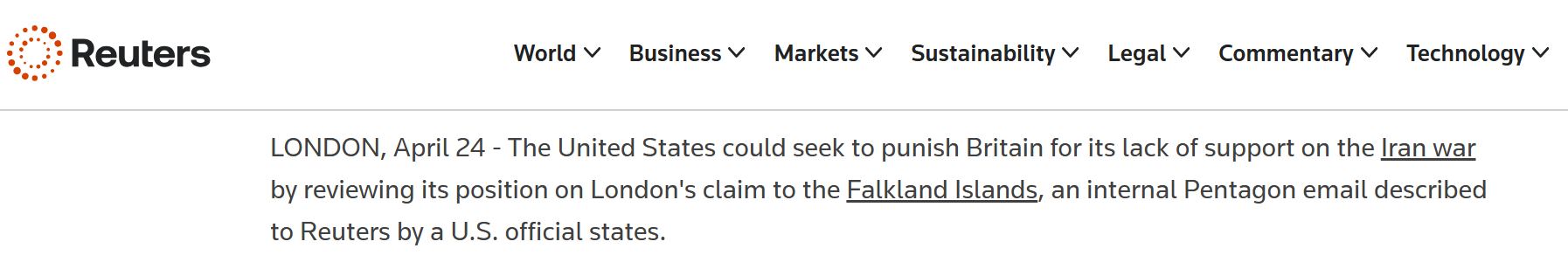 路透社网站报道截图