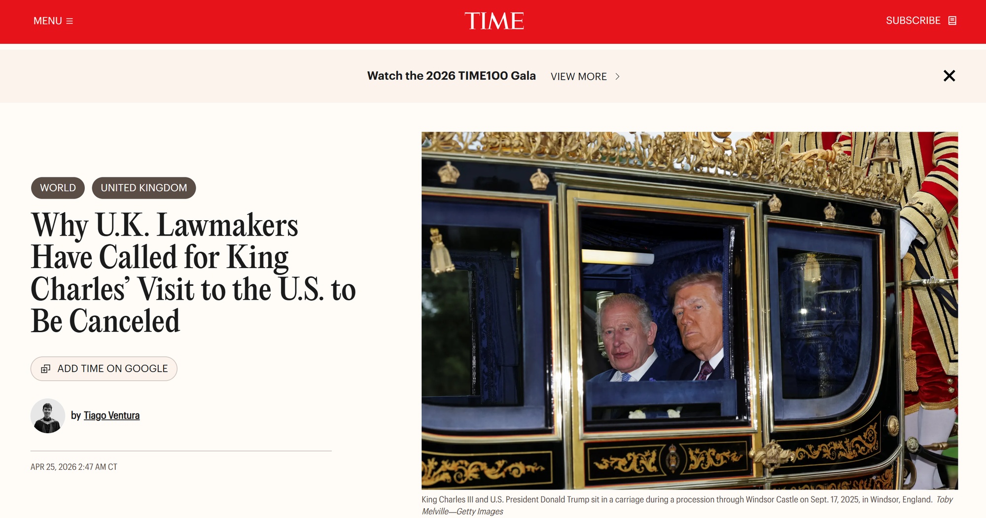 《时代》杂志网站报道截图