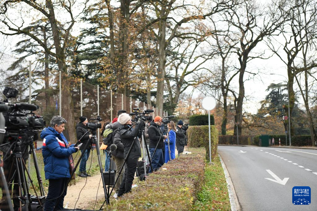 11月23日,记者在瑞士日内瓦美国常驻联合国日内瓦办事处代表团驻地外等候。