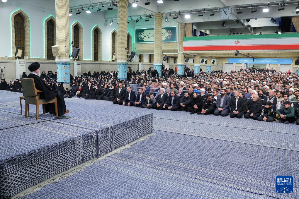1月17日,在伊朗首都德黑兰,人们在现场听取最高领袖哈梅内伊发表讲话。据伊朗伊斯兰共和国通讯社17日报道,伊朗最高领袖哈梅内伊说,美国总统特朗普让伊朗遭受损害和伤亡,并对伊朗民族提出指责,这应被视为犯罪。新华社发(伊朗最高领袖网站供图)