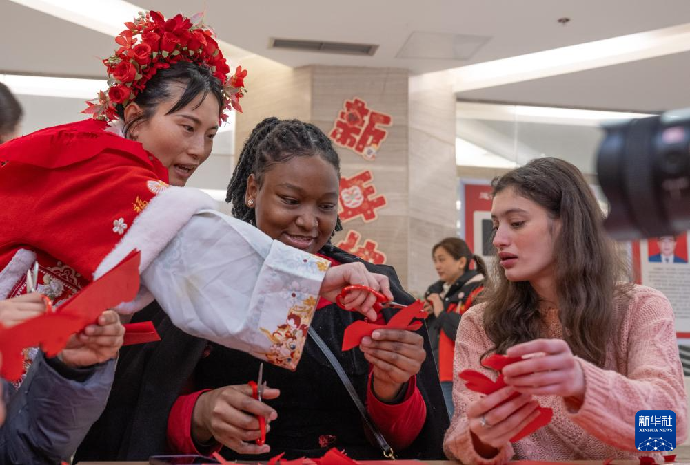 春节临近,重庆市巴南区举办2026年第一季度“老外@Chongqing”活动。20名外国留学生齐聚一堂,沉浸式体验木洞山歌、剪纸、打糍粑等当地传统文化习俗,感受中国年的喜庆氛围。