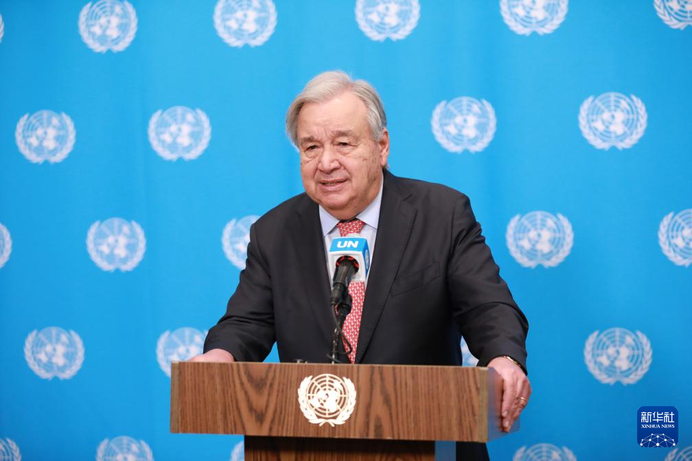 3月25日,联合国秘书长古特雷斯在位于纽约的联合国总部举行的记者会上讲话。联合国秘书长古特雷斯25日就中东局势对媒体发表讲话,呼吁美国和以色列结束对伊朗的战争,同时敦促伊朗停止攻击邻国。新华社记者 谢锷 摄