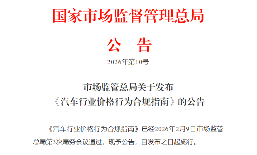 《汽车行业价格行为合规指南》发布
