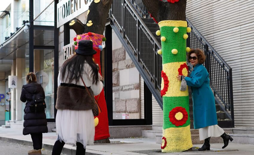 大树披“针织外衣” 北京添多彩冬景