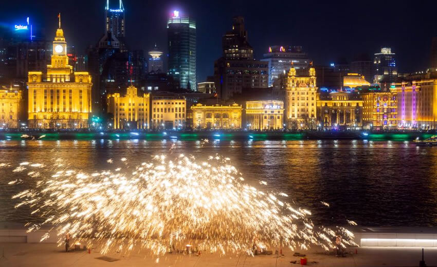 非遗“打铁花”表演点亮上海