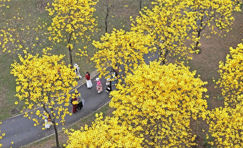 广西南宁:黄花风铃木盛放