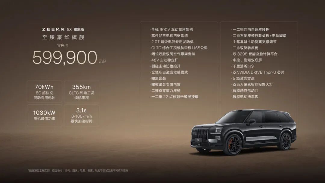 9月29日,极氪9X正式公布了四款车型价格,限时售价45.59万元至58.99万元。这款极氪旗舰大型SUV基于浩瀚-S电混架构打造,首发搭载浩瀚超级电混、浩瀚AI数字底盘、浩瀚安全盔甲与千里浩瀚辅助驾驶四大核心科技,在三电、底盘、安全与智能化等领域实现了真正的代际领先。